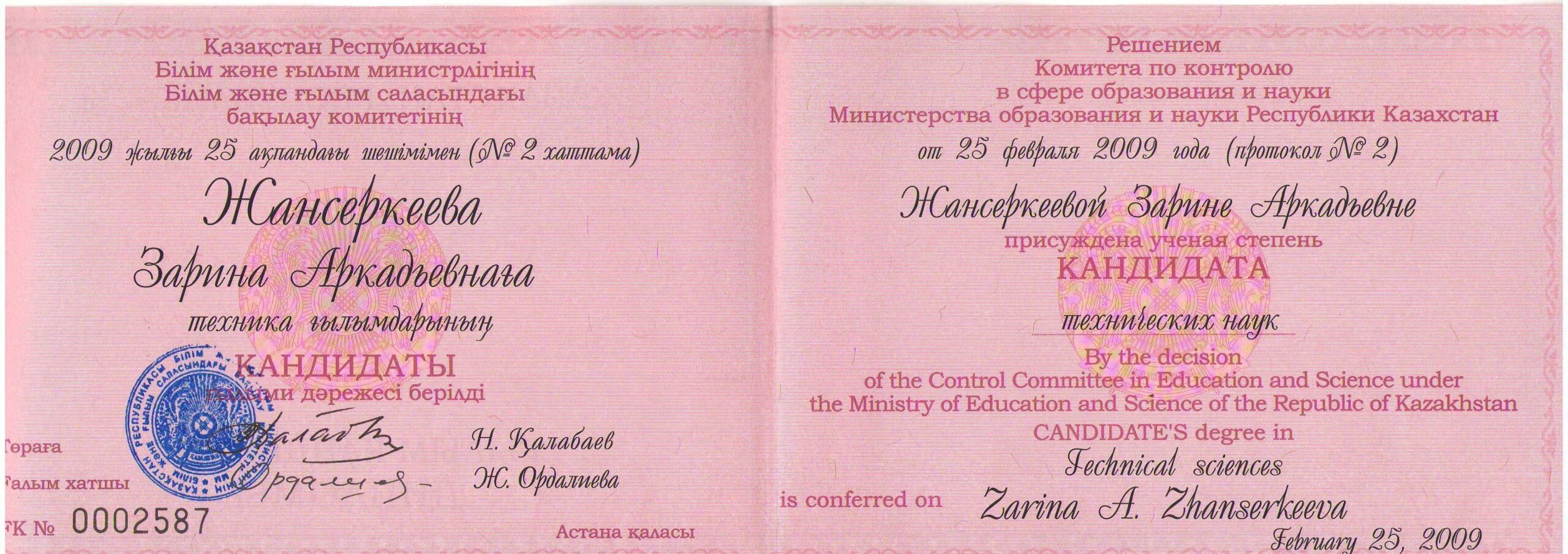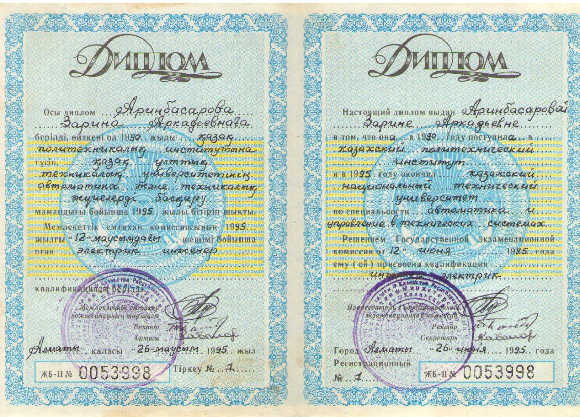 КазНТУ им Сатпаева, "Автоматика и управление в технических системах", 1995 г