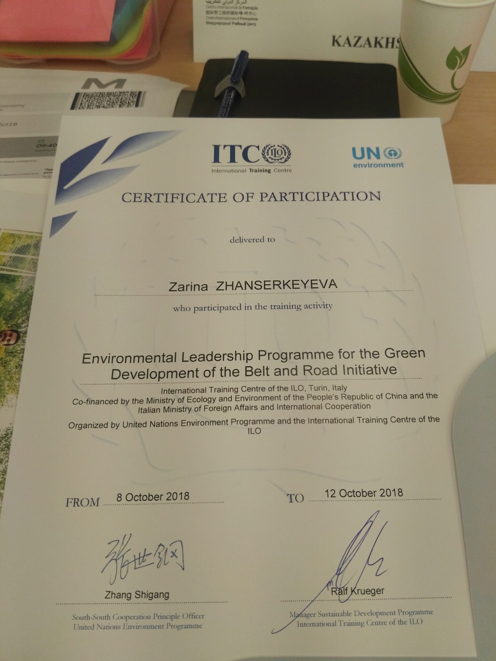 «Зеленые технологии» (Environmental Leadership Programme for the Green Development of the Belt and Road Initiative, Турин, Италия, ООН)