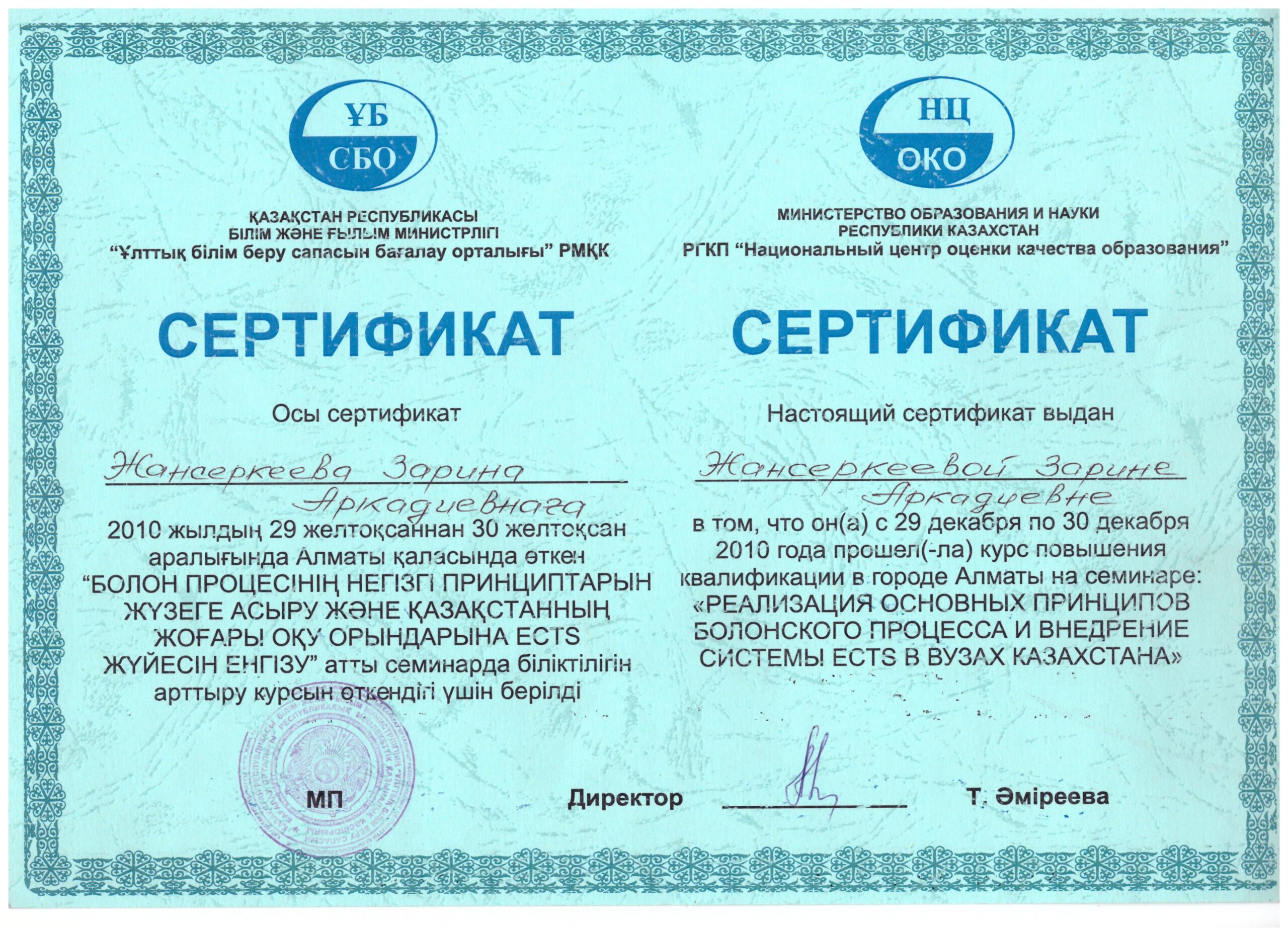 Реализация основных принципов Болонского процесса и внедрение системы ECTS в вузах Казахстана