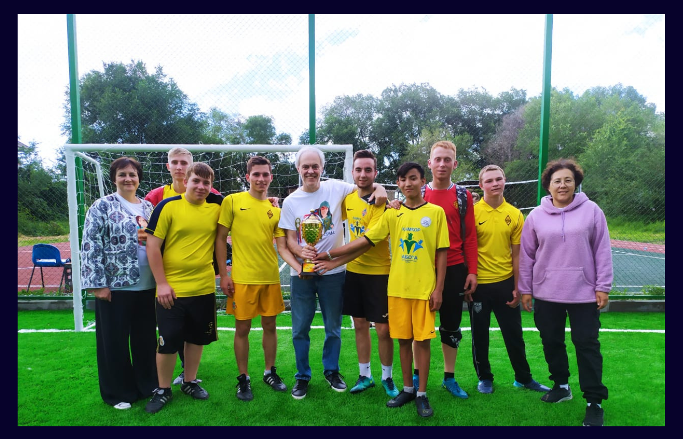Развитие футбола в детском доме «Ковчег» имело несколько целей. Прежде всего, большое количество подростков парней создавало проблему их организации и развития, снижения напряженности, физическое развитие, отвлечение от вредных привычек, сплочение в коллектив и тд. В итоге, силами волонтеров, кампании «Алматы Марафон» и тренера Ольги Жакеновой удалось создать футбольную команду, которая одерживала стабильные победы в матчах и товарищеских встречах. Парни играли 13-той командой компании «Ланжоу» на матчах, выступали среди детских домов и других соревнованиях. Сейчас в Ковчеге есть футбольное поле, инвентарь, совместно с Ассоциацией детского футбола открыта бесплатная секция для детей из малообеспеченных семей Талгара. А парни подростки, игравшие в команде, приобрели жизненно важные навыки, научились тренироваться, отошли от вредных привычек и выросли как физически, так и морально